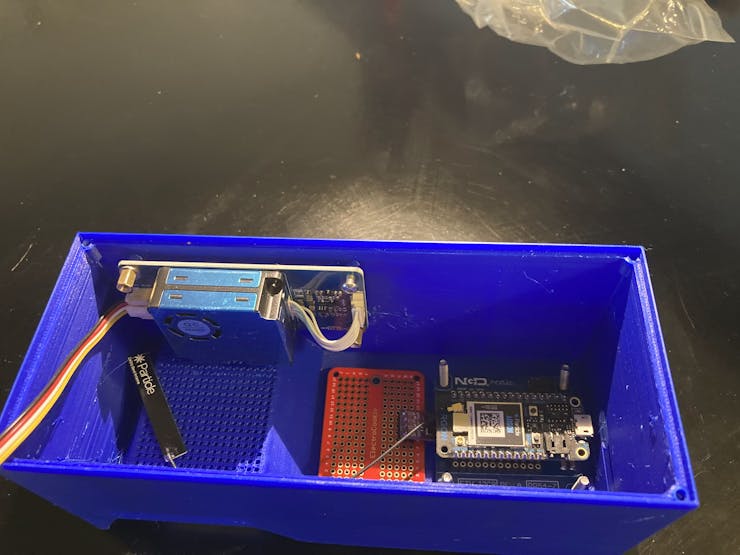 This project uses a 2 main sensors to monitor the environment within our print room. The particulate matter(PM2.5 HM3301) sensor, and the BME280 sensor which measure temperature and humidity. We added a blower fan right above the Micro-USB port to circulate air through the enclosure.