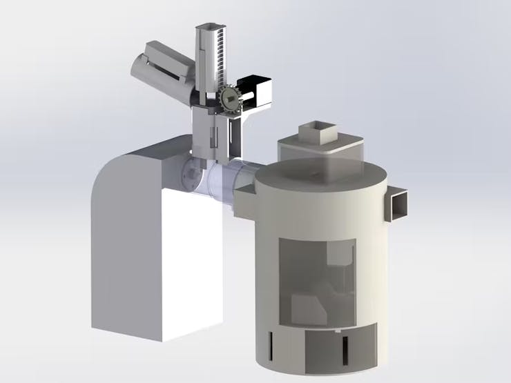 A traditional juicer requires the user to manually push in the fruits/vegetables down the intake pipe. For an in-sink composter, we need a mechanism to achieve that. We used a rack and pinion mechanism to control the vertical movement of a piston, which can lift up to allow food waste to come through and then push down to press the food into the grinder.