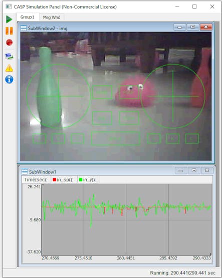 CASP software is used to quickly create models and generate binary code for the on-board micro-controller target and native PC. This software enable users to graphically visualize the signal at any point of the model in real time. This feature is extensively used while tuning the PID controller.