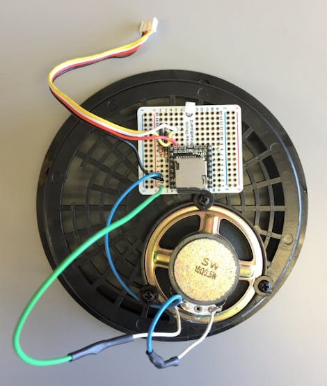 Your new cauldron will most likely not have space inside, so you'll want to conceal the Uno and sound module behind the cauldron (perhaps beneath some black cloth) and position the speaker so that it faces out towards your visitors.