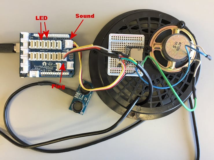 Plug the four-wire cable from the sound module into the "UART" socket (also labeled TX/RX) on the Grove shield.Plug the single-wire cable from the LED disc into socket 3 on the Grove shield.Plug the three-wire cable from the LED disc into socket 4 on the Grove shield.Plug the cable from the Ping distance sensor into socket 7 on the Grove shield.Plug a USB "Standard B" cable into the Uno.ĀMy cauldron, having been gutted of its prior electronics, had a handy spot in the base to house the Uno, sound module, and speaker.