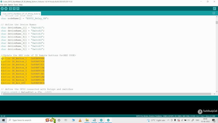 In the code, you have to update the Device Names (optional)Ā Then update the HEX codes of the IR remote as shown in the tutorial video.Ā
