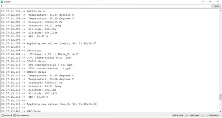 Soil Moisture (VWC) UVA/B irradiance. Ambient Climate Parameters (Temperature & Humidity) includingCO2 and VOC concentration.Âthus, enabling better water conservation, less likely to over or under-water crops and save time and resources.