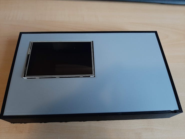 The intention is to wrap the box in wrapping paper, so a top faceplate was designed as a snug fit to cover everything up.