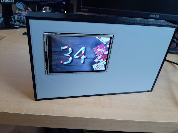 The intention of the project is to have a real time clock will keep track of how many days there are until Christmas. A small screen will be the focal point and will load an image showing the current number of days until Christmas.