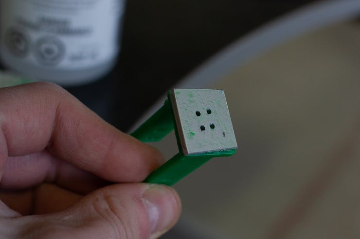 I had no idea if the PLA printed parts would allow the parts from the printer to adhere to it. The printer works by having the build plate stickier than the surface where the resin sits(in the tank). For the clear bottom of the resin tank, I used some sheet protectors. I cut out a square, and with two of the prints, its sandwiched between them, allowing a tight fit and a smooth, clean surface.