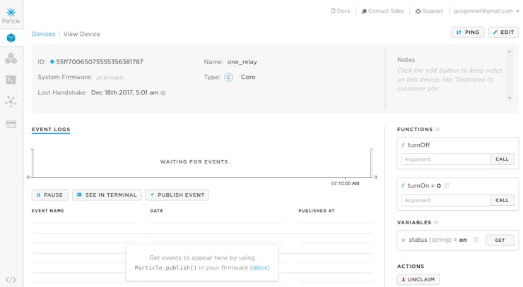 Particle.function("turnOn", turnOn); Control it with the Particle app: