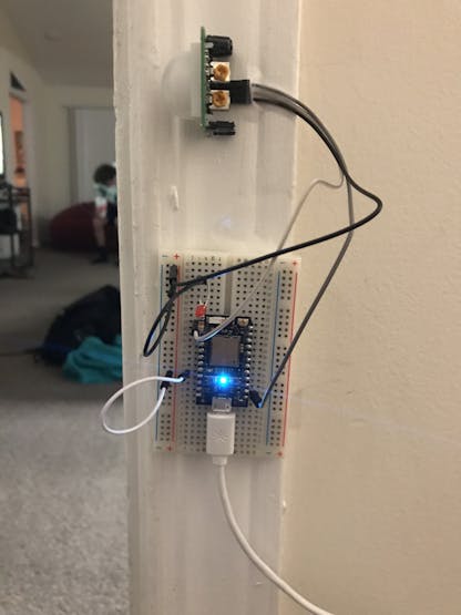 Above are 3 photos showing key elements of this project. The first is the Photon attached to the PIR motion sensor. The sensor was taped to the door so motion would be detected upon entry. The code used by this photon publishes an event called "itschristmas" whenever motion is detected.