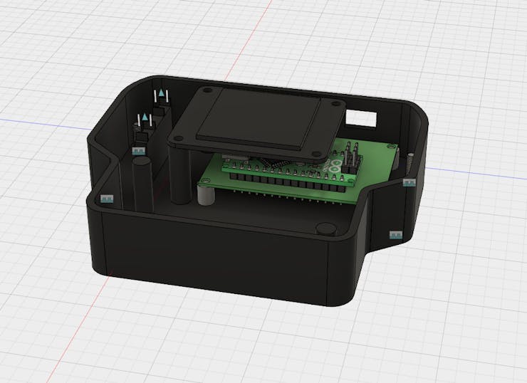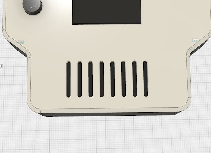 Next was the question of where to put the speaker and buttons. I decided that the 3W speaker could go just below the screen (looking at it from the top), and that also required putting a "grill" over the speaker so the sound wouldn't be muffled.