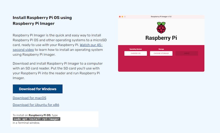First, we need to boot our OS to Raspberry Pi, and we need a tool called Raspberry Pi Imager.