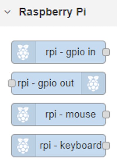 In the Node's pallet, scroll down to the last section, and you can find an additional node specifically for Node-Red.