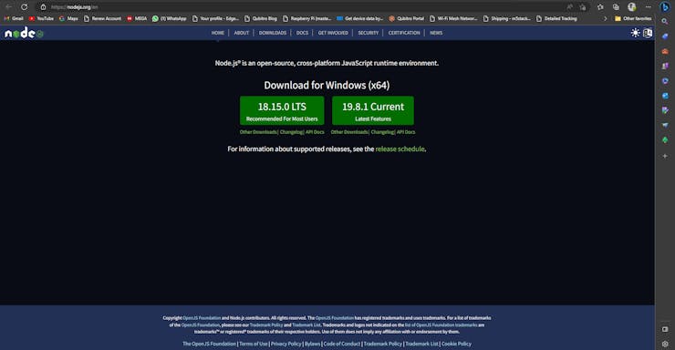 To install the Node Red, we need Node JS. Go to the official Node.js home page. It will offer you the best version for your system. Then install the package.