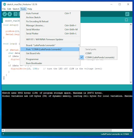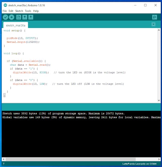 Simply it will get a serial data from the COM4 and based on the data it will turn on and off the led.