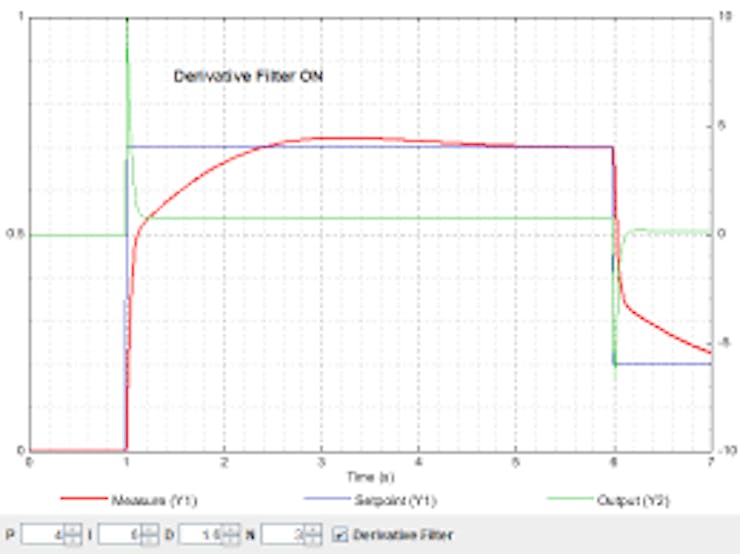 3. Derivative - The I-controller doesnāt have the capability to predict the future behavior of error. So it reacts normally once the setpoint is changed. D-controller overcomes this problem by anticipating the future behavior of the error. Its output depends on the rate of change of error with respect to time, multiplied by the derivative constant. It gives the kick start for the output thereby increasing system response. It improves the stability of the system by compensating for phase lag caused by the I-controller. Increasing the derivative gain increases the speed of response.