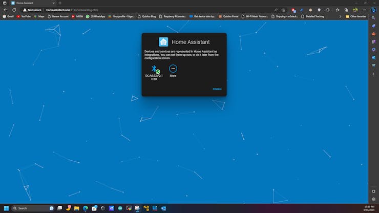 If there are smart devices in your home connected to your network, Home Assistant will automatically display them for integration. You can select them and set them up or do it later. Click Finish.