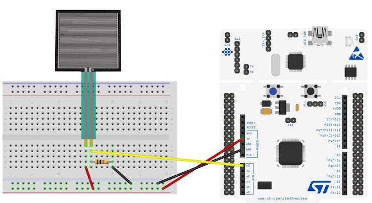 The board provides supply to the sensor, particular attention must be given to the 10 kΩ resistor that is fundamental for the circuit to not break the sensor due to the power supply.