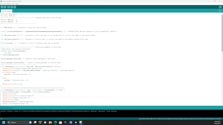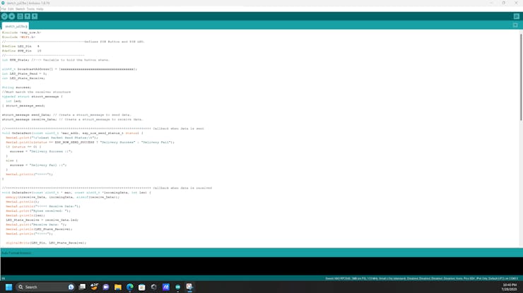 We have already built our transmitter; next, we need to set up our receiver node. Just upload the below Arduino sketch to build a receiver to get data from the transmitter and based on the input data it will glow the led.