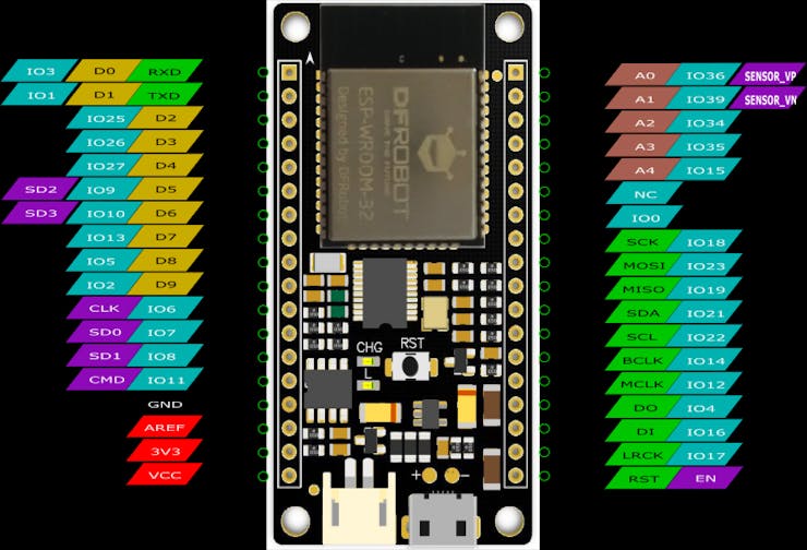 Since I setup the Pixy to use the I2C mode, only 4 wires are needed to connect it to the ESP32 FireBeetle. Just connect SDA, SCL, 5V, and GND.