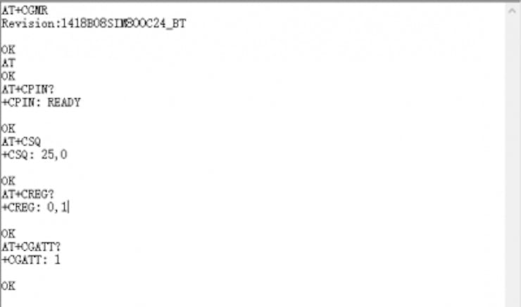 The table provided below lists several common AT commands that serve to swiftly and effectively verify the proper functioning of the SIM800C's AT serial communication and network connection. Before proceeding with the steps outlined for the network communication demonstration, it is advisable to conduct a straightforward network test. This preliminary test ensures that the intended network connection is in working order and fully operational.