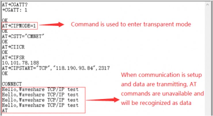 This mode provides control over the data transmission process, allowing you to send and receive data, manage connections, and configure communication settings using AT commands. It is suitable for applications where you need fine-grained control over the communication process and want to ensure data integrity.