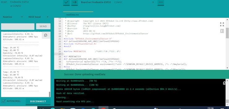 After making sure the sensors are working properly, then you can proceed to upload the main code and the sensor data to the arduino cloud
