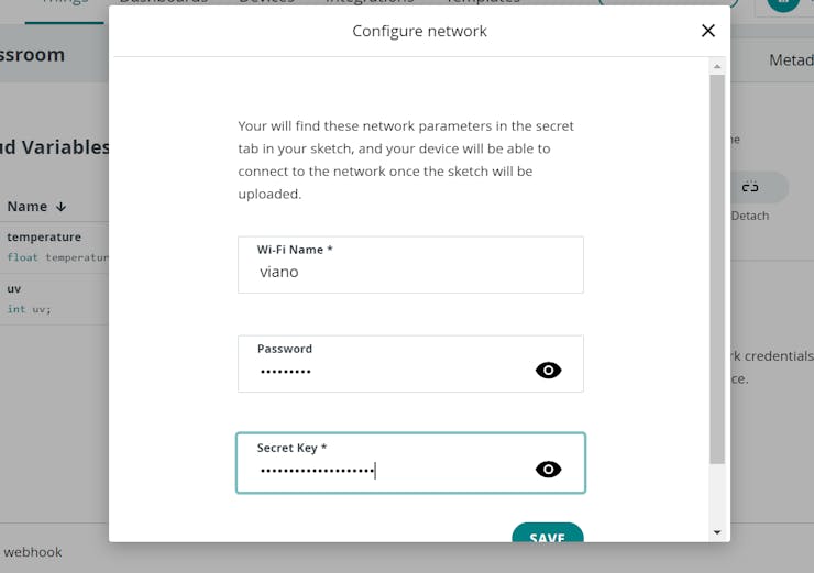 After the variables is setup next thing I need to do is configure the wifi credential and add the key for my device