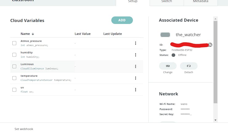 Before coding the device, I need to setup an account and a few variables on the Arduino IoT Cloud.