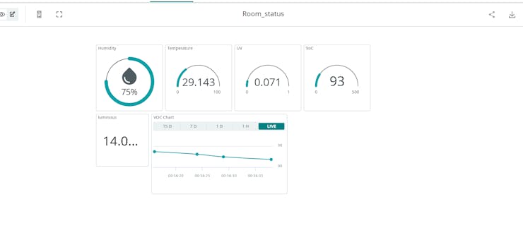 After the code is successfully uploaded, go back to IoT Clouds menu then select the dashboard. arrange the dashboard however you like.
