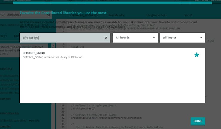 search for dfrobot environmental and click the star icon next to it. Do the same thing for the SGP40 then click done