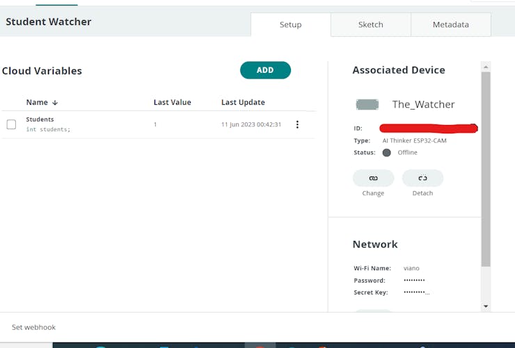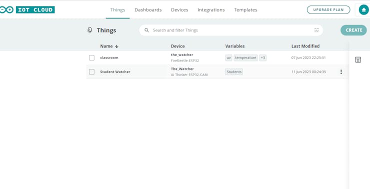 After the model is downloaded now go back to the arduino cloud platform. Then Create new things called Student watcher or anything you want