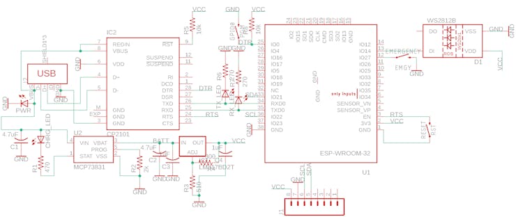 I also wanted there to be more indications of the operations, so I added an LED for charging, one for power, and two for the USB status. I chose to use an ESP32 due to its increased power and Bluetooth connectivity, which can allow for future expansion, such as an accompanying app.