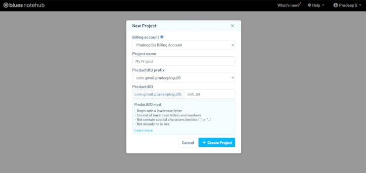 Before uploading the Arduino sketch to the Arduino Nano 33 BLE Sense, create a new project on Blues Notehub and use the product ID in the Arduino sketch.
