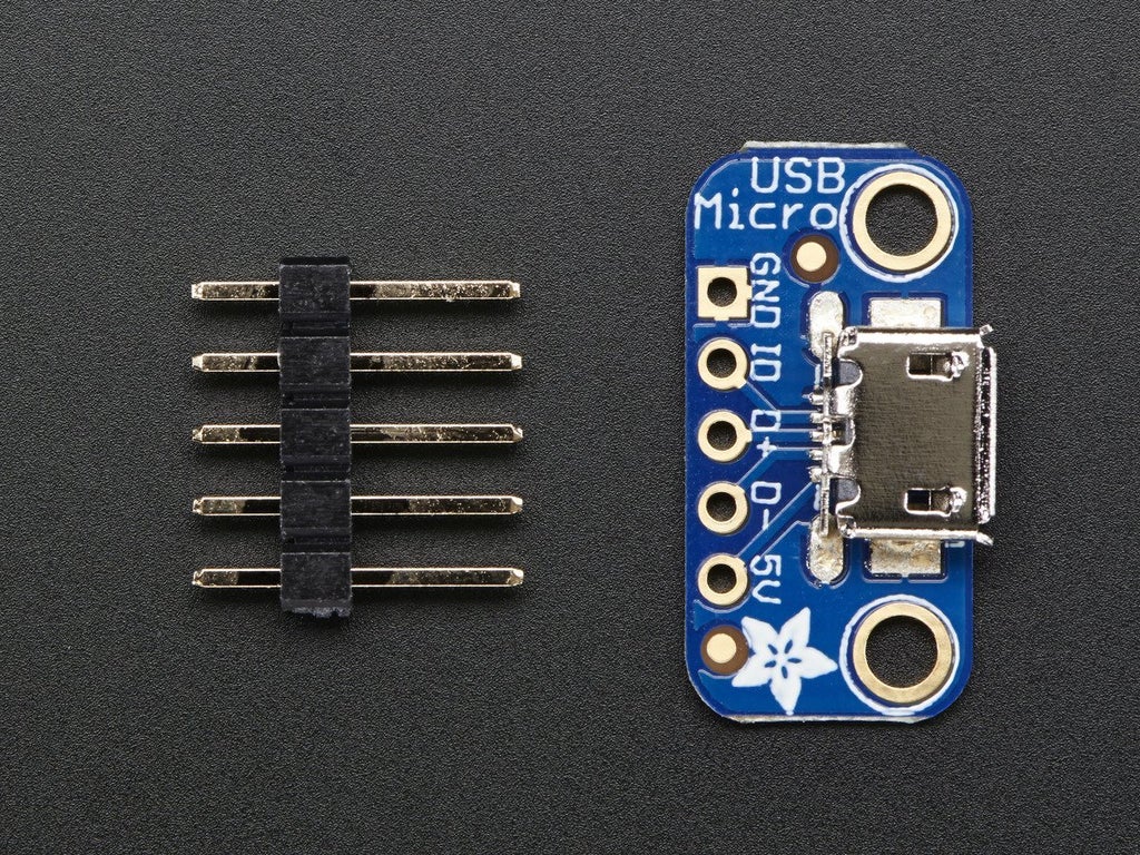 Now you will need to solder power and ground wires to the mirco usb breakout board sot that you can power the unit from a micro usb connection.