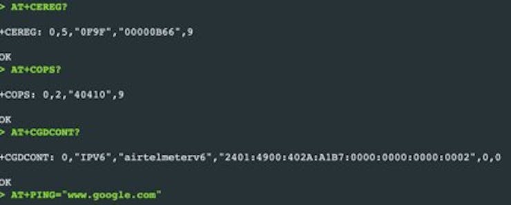 Google Ping Test using nRF9160 DK and Airtel NB-IoT Service