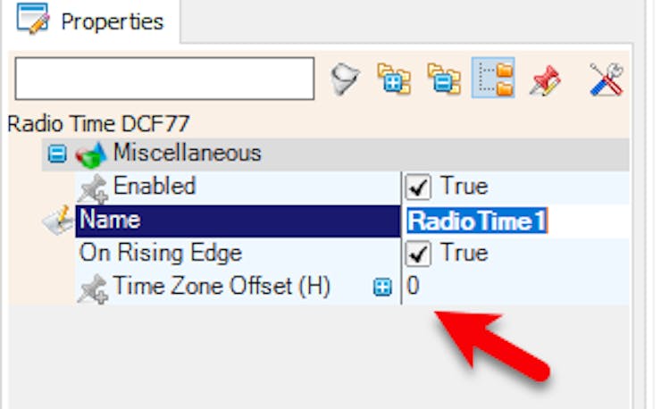 - You can set your time zone by selecting "RadioTime1" and in the properties window set "Time Zone Offset (H)"