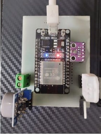 The hardware implementation of our real-time air quality monitoring system involves setting up sensors. After testing each of the components individually we dived into combining all of the sensors and ensured their working through a single controller. The sensor used are give above in the things section.