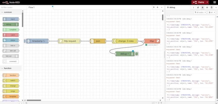 Node-RED is a visual programming tool that allows you to create flows of data and logic using nodes. In this article, we will use Node-RED to track the location of the International Space Station (ISS) and display it on a world map.