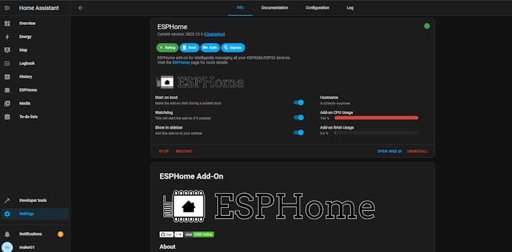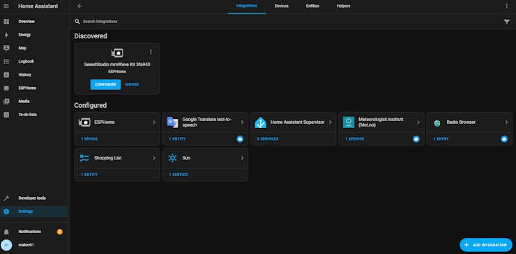 First, we need to add the ESP addon to our Home Assistance system. Open the home assistance.