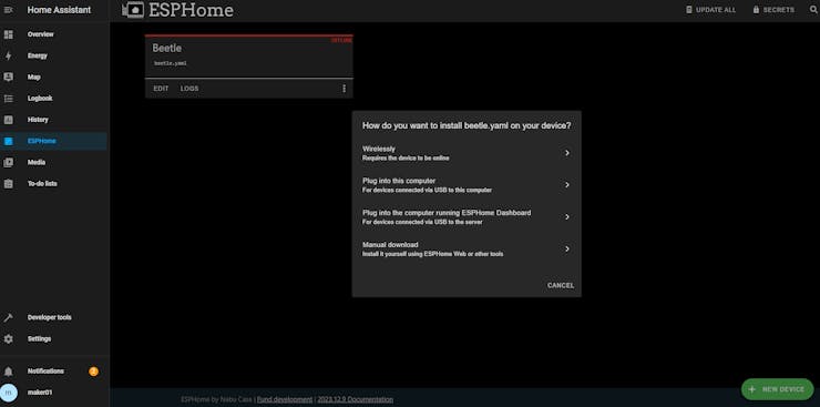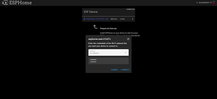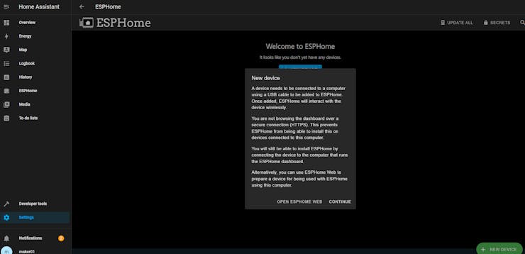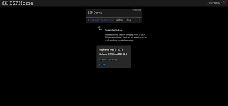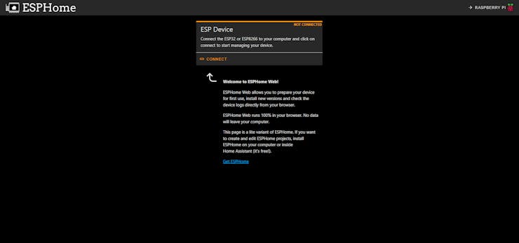 Then open the ESPHOME web and follow the instructions to flash ESP Home firmware.