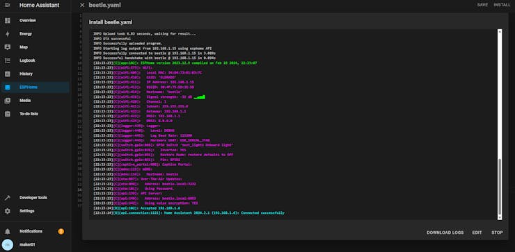 Check your ESPHome configuration for errors.Verify that your Beetle ESP32 C3 is connected to the correct Wi-Fi network.Use Home Assistantās logs and developer tools to debug any problems.