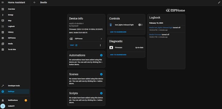 With the Beetle ESP32 C3 integrated into Home Assistant, you can: