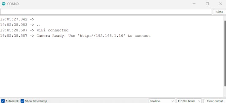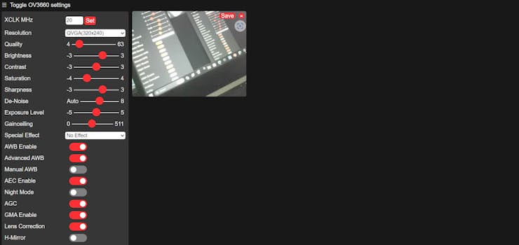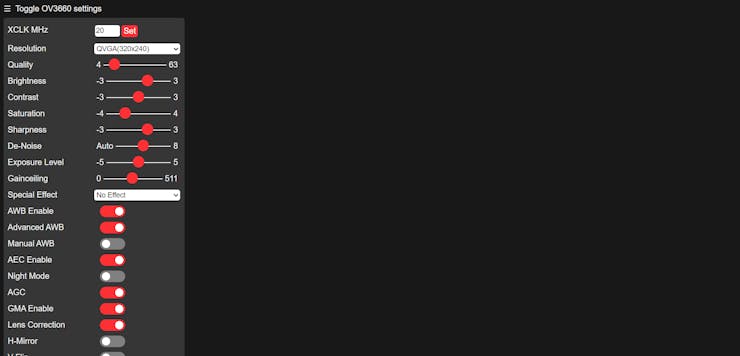 Next, open up the IP address that shows in the serial terminal and look for the camera web server properties.