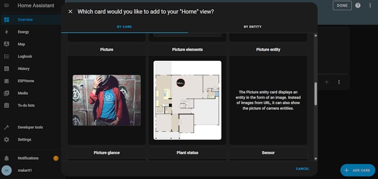 Open Home Assistant.Next, navigate to the overview and add a picture card.Ā