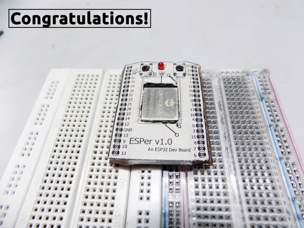 While soldering the headers, placing ESPer on breadboards perfectly aligns the headers.