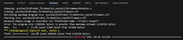 Error: The program size (1505201 bytes) is greater than maximum allowed (1310720 bytes)
