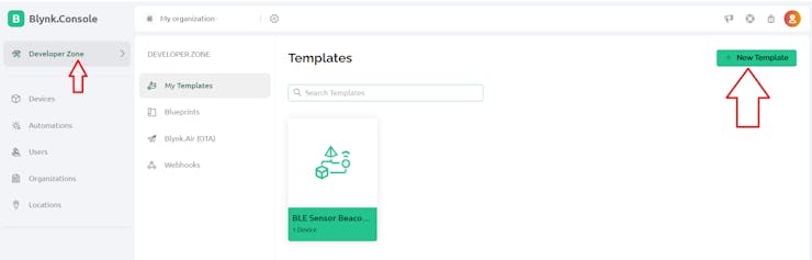 Ā - After sign-up and Login. Go to Blynk Console. Then Create templateĀ