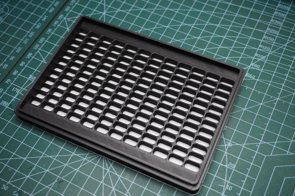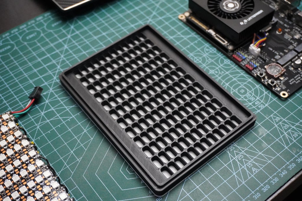 For the matrix cover, I started with white PLA for the diffuser and then switched to matte black once the printer reached the grid section.