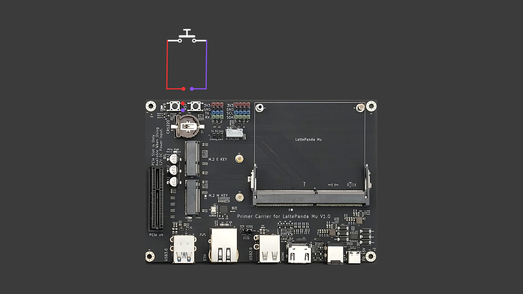 Extend the power button of the carrier board by soldering a push button.