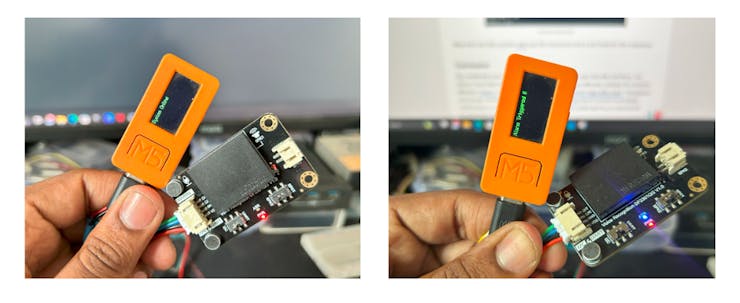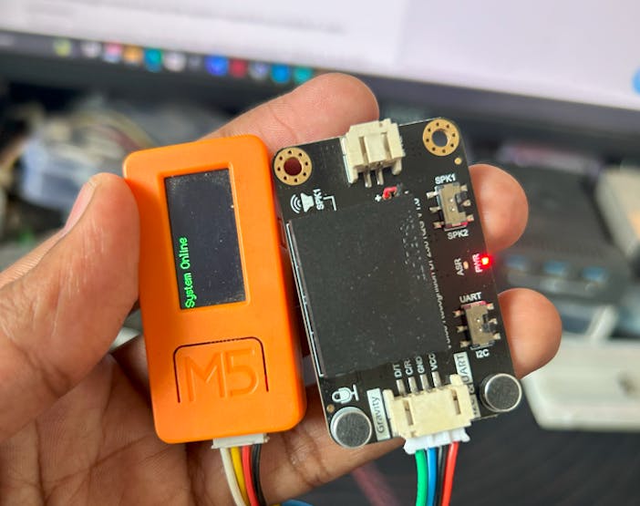 Connect the voice recognition moduleās pins (VCC, GND, SDA, SCL) to the corresponding Grove pins on the M5StickC.