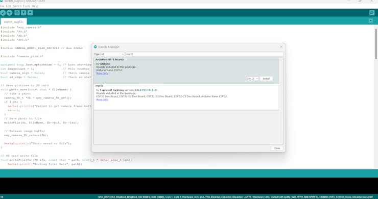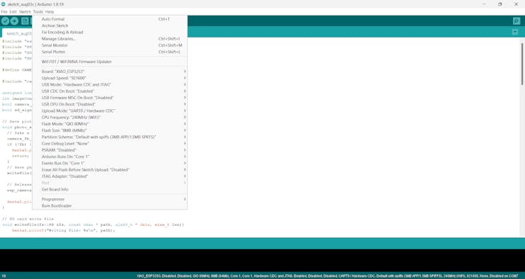 Ā Ā Ā Ā Go to Tools > Board and select Xiao ESP32 S3 Sense.Ā